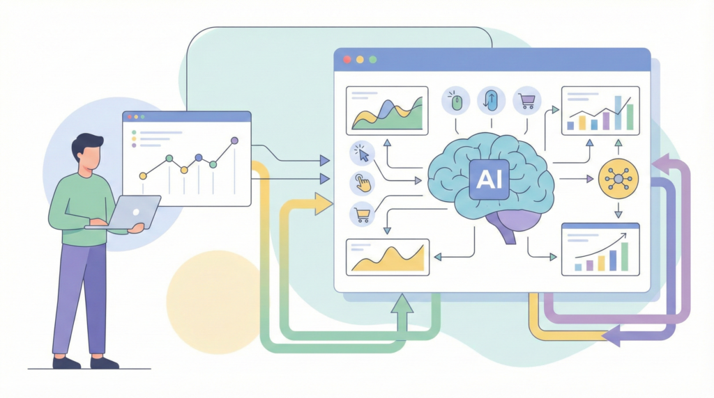 - Machine Learning (ML): Uses historical performance data to predict outcomes such as conversions, engagement, or churn
